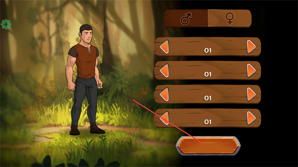1、进入角色创建界面先选男或女按钮,确定性别再调整各数值条的01参数后,点击底部按钮完成角色创建。