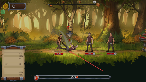 3、战斗时关注自身10/10的生命值状态,优先攻击最前面的敌人,击败他们以推进战斗进程获取胜利。