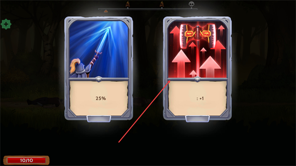 4、战斗结束后获得的卡牌中,含25%效果的卡牌与带+1属性增益的卡牌,可选择携带以强化角色能力。