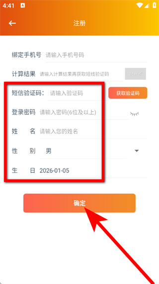4、输入验证码、设置密码等信息后,点击确定,完成注册。