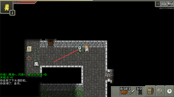 4、在地牢内拾取钥匙可开启对应房门,击败下水道巨蛇后触发升级,能提升精准闪避等属性,强化角色战斗能力。