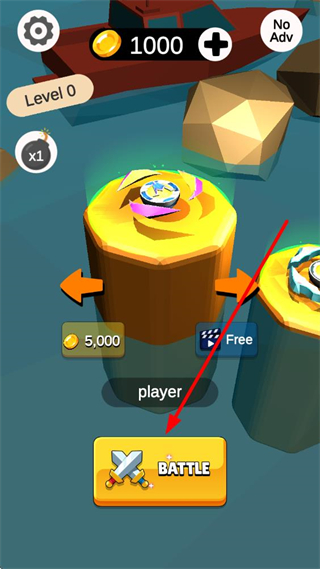 1、进入游戏界面后,点击BATTLE按钮,在选择陀螺界面确定出场的陀螺后,进入对战场景。
