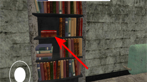 3、前往书架区域,点击箭头指向的红色书籍,收集该物品,可能是后续解谜的关键道具。