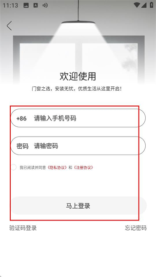 3、在登录注册页面,填写信息并勾选协议后,点击按钮即可完成账号登录。
