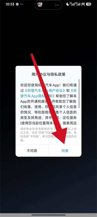 1、打开仰望汽车,弹出弹窗后,点击同意,进入主界面。