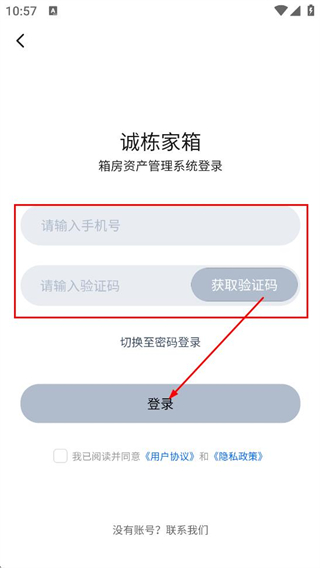 3、在验证码登录页面,填写手机号和验证码后,再点击登录按钮。完成账号登录操作。
