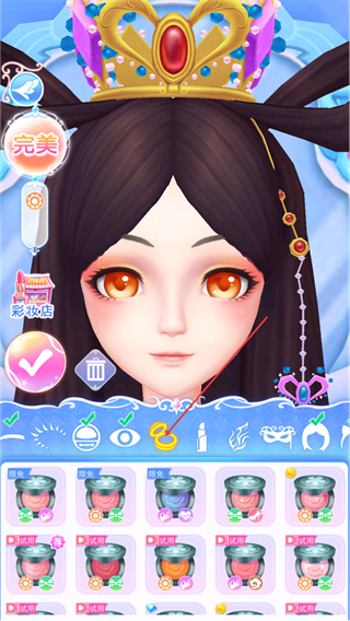 3、全风格彩妆自由创作,涵盖日常裸妆、古风彩妆、童话妆容等多元风格,从眉笔、眼影到口红、腮红,每款彩妆道具都支持细节调整,适配不同仙子气质打造专属造型。