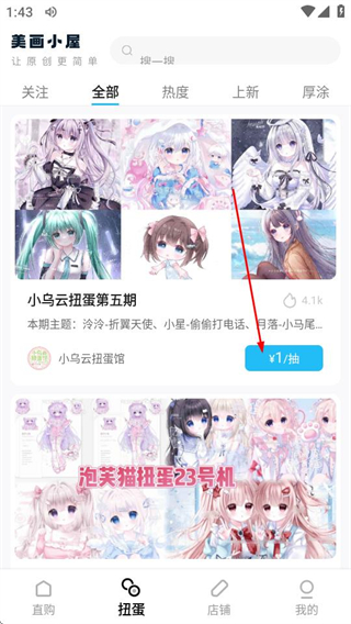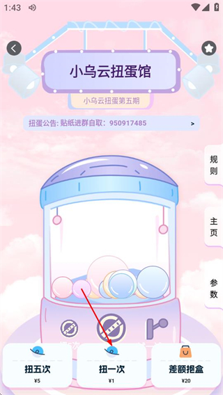 2、在扭蛋页面,点击目标扭蛋的¥1/抽按钮,可进入该扭蛋的抽取页面。