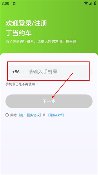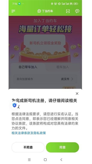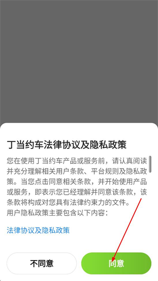 1、阅读法律协议和隐私政策后,点击同意按钮,进入登录/注册页面。