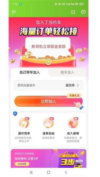 丁当约车是专为网约车司机打造的高效接单出行平台,让司机随时关注订单动态、精准筛选合适订单,快速完成接单流程,为乘客提供贴心服务的同时轻松增收,更实时统计接单数据与收入明细,助力优化接单方案,彻底解决找单难、接单难问题,全方位提升接单效率与收益。