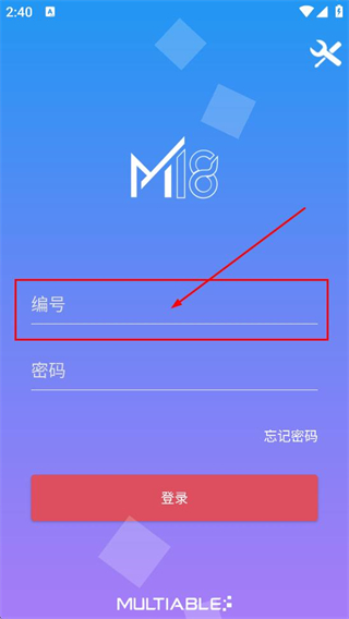 2、在M18登录页面,填写编号对应的内容,即可进行下一步的操作。