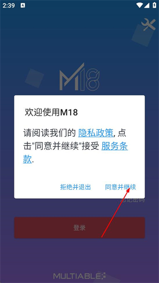 1、阅读隐私政策和服务条款后,点击同意并继续,进入登录页面。