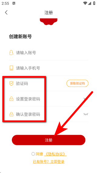 4、在验证码框,设置登录密码,勾选后,点击注册,完成账号注册。