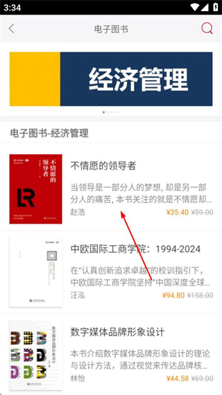 2、在电子图书页面,点击目标图书条目,可进入该图书的详情页面。