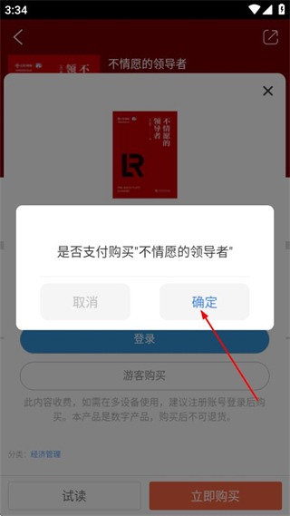 5、在确认弹窗中,点击确定按钮,即可完成图书的购买流程。
