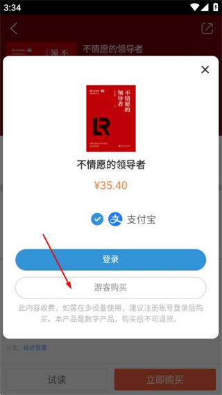 4、在购买弹窗中,选择游客购买选项,可弹出支付确认弹窗。