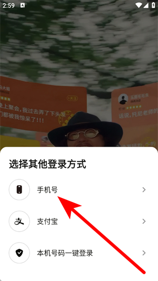 3、在登录方式选择页面,点击手机号,进入手机号登录页面。