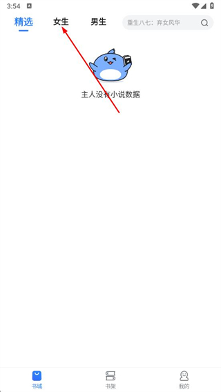 1、进入小说会后,点击女生分类,可进入女生频道的小说列表页面。