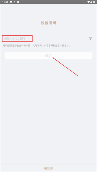 4、在设置密码页面,按照要求输入密码,完成后点击确定,即可完成账号注册操作。