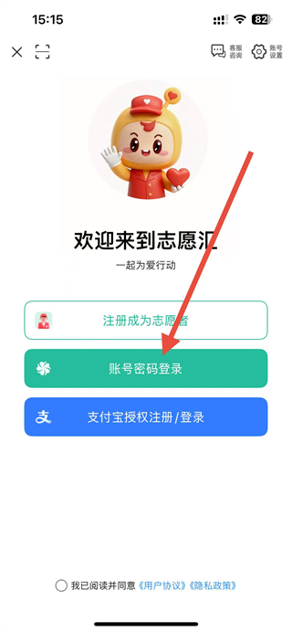 2、在登录页面中,选择账号密码登录选项,进入账号密码登录的操作界面。