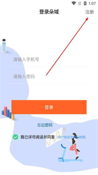 2、进入登录主页面。点击注册选项。