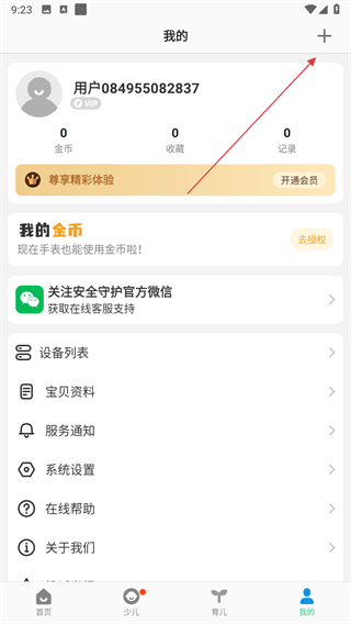 2、在个人中心页面的右上角,点击+按钮,即可跳转至选择设备类型的页面。