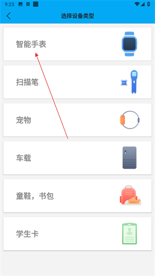3、在选择设备类型中,找到并点击智能手表选项,进入添加设备的信息填写页面。